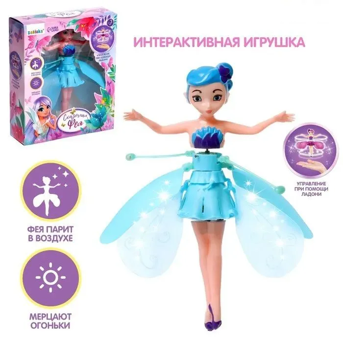 Летающая фея — удивительная детская игрушка, которая сотрет грань между волшебным миром фей. Всего лишь с помощью ваших ладоней вы сможете запустить игрушку в воздух, встроенный механизм предназначен для отталкивания от поверхностей, по этому всякий раз когда ваша рука приближается к игрушке она взлетает. Чтобы запустить фею вам необходимо: передвинуть рычажок на игрушке в положение ON, придерживая игрушку за верхнюю часть поднесите ладонь к ногам феи. И когда она замашет крыльями отпускайте ее и она будет летать.